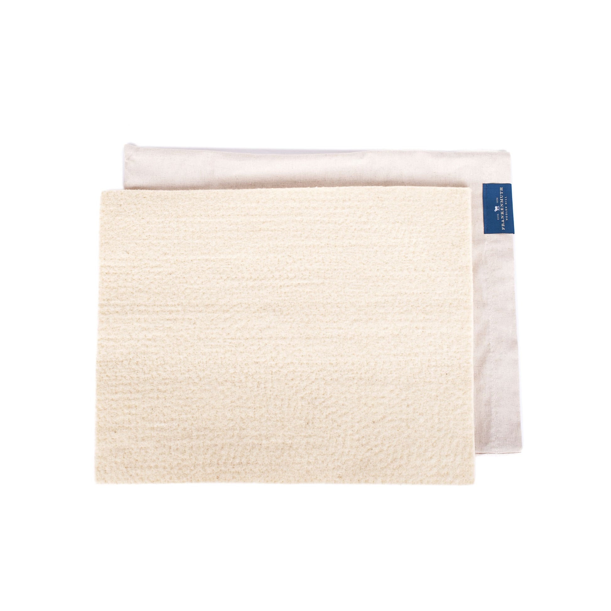 The wool naturally wicks away moisture while resisting odor, making it a beautiful and practical alternative to synthetic mats. When it needs freshening, simply hang it to air dry or lay flat in a well-ventilated spot. If needed, the linen cover can be washed in cool water and air dried to keep it looking clean and new.