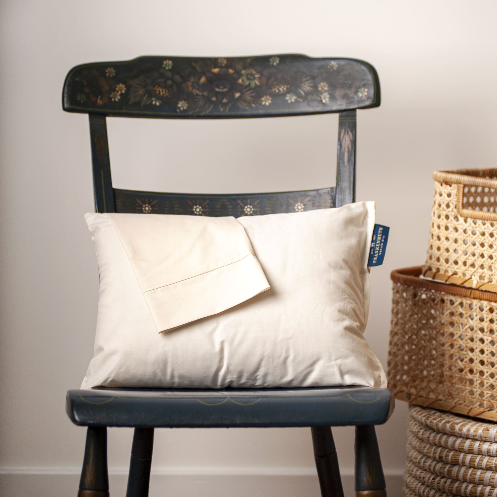 Experience incredible comfort when you’re on the go with our compact and versatile travel pillow. Wool pillows are hypoallergenic, providing you with a clean and healthy place to rest your head during your travels. Wool naturally repels dust mites, mold, mildew, and moisture. Enjoy the additional wool benefit of temperature regulation, meaning it’s a great pillow for cooling you off when you’re traveling in the heat and keeping you warm when it’s cold out. This Wool Travel Pillow is covered with a 100% certified organic cotton pillow covering. The pillows are 12"x16" in size.